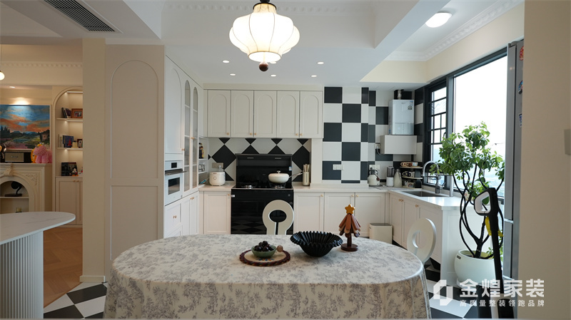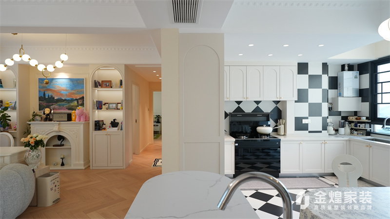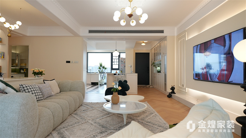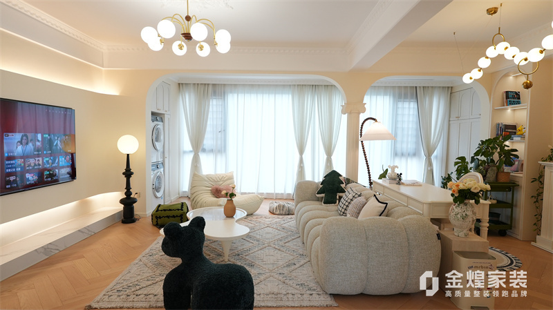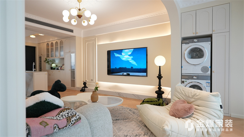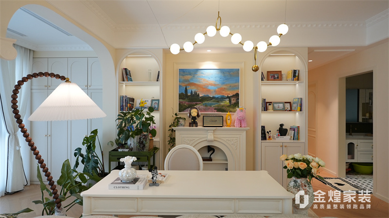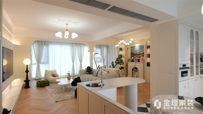 該案例整體色調(diào)柔和淡雅,家具造型簡約,線條流暢,同時(shí)融入了一些法式元素,如精致的吊燈、優(yōu)雅的拱形門洞和浪漫的裝飾細(xì)節(jié),既保留了法式風(fēng)格的浪漫與優(yōu)雅,又兼具現(xiàn)代簡約的簡潔與實(shí)用。