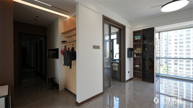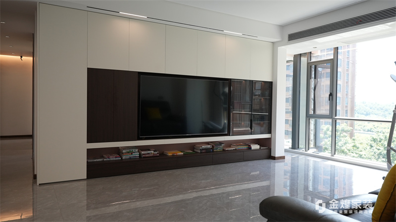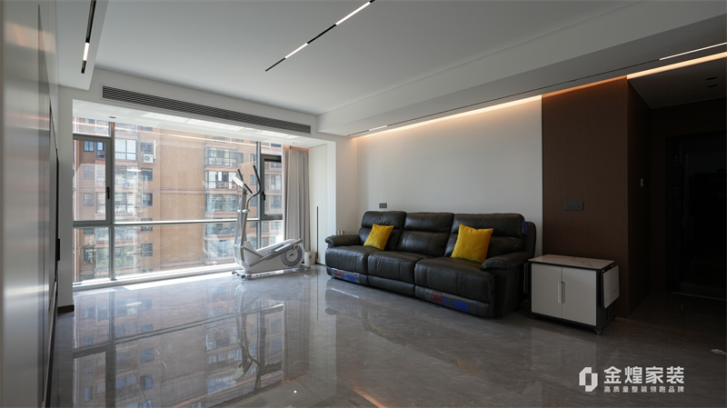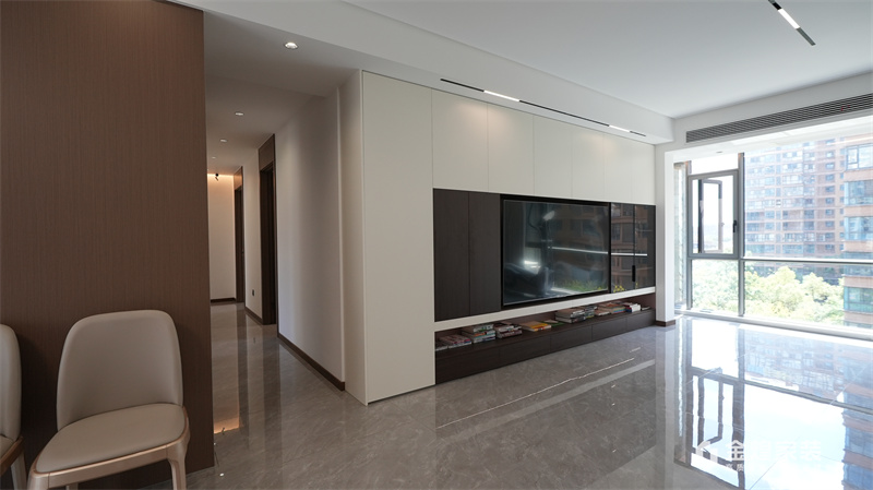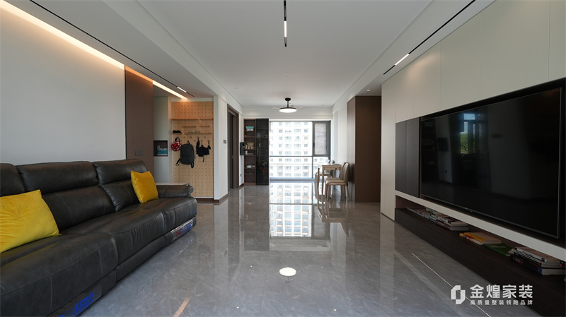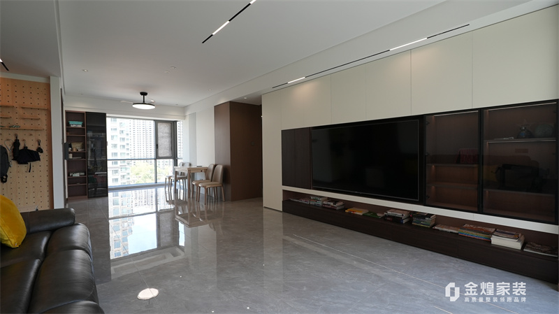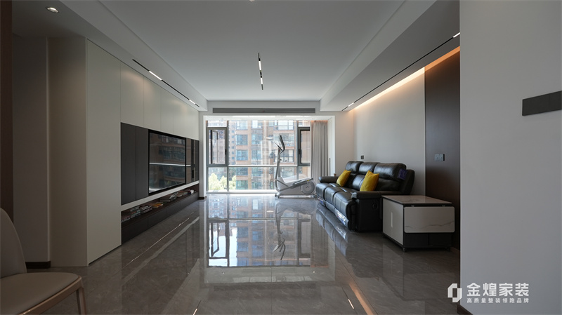 整體色調(diào)以黑白灰為主,簡潔明快,沒有過多的裝飾,體現(xiàn)了現(xiàn)代意式風格的特點。客廳的布局開闊,家具的選擇也以簡約為主,如黑色皮質(zhì)沙發(fā)、簡潔的電視柜等,都符合現(xiàn)代人的審美。