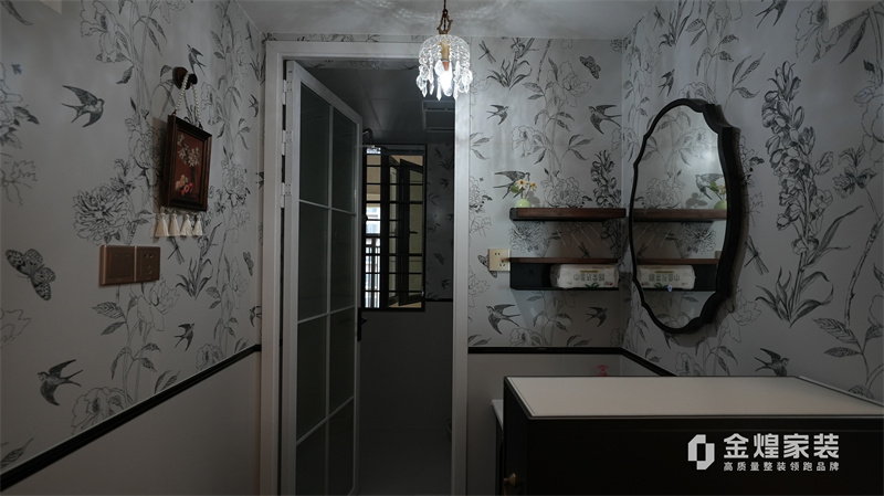 從客廳的深色皮質沙發、木質電視柜,到餐廳的玻璃餐桌、深色餐邊柜,再到臥室的白色衣柜、深色木質床,都體現了中古風格對材質和色彩的選擇偏好。