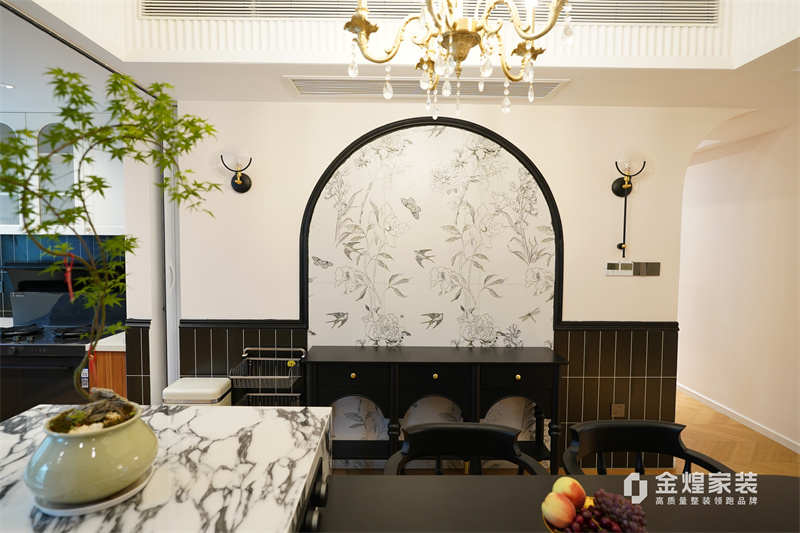 從客廳的裝飾細節可以看出,如帶有精致雕花的天花板、華麗的吊燈、優雅的家具線條以及整體柔和的色調,都透露出法式風格的浪漫與典雅。