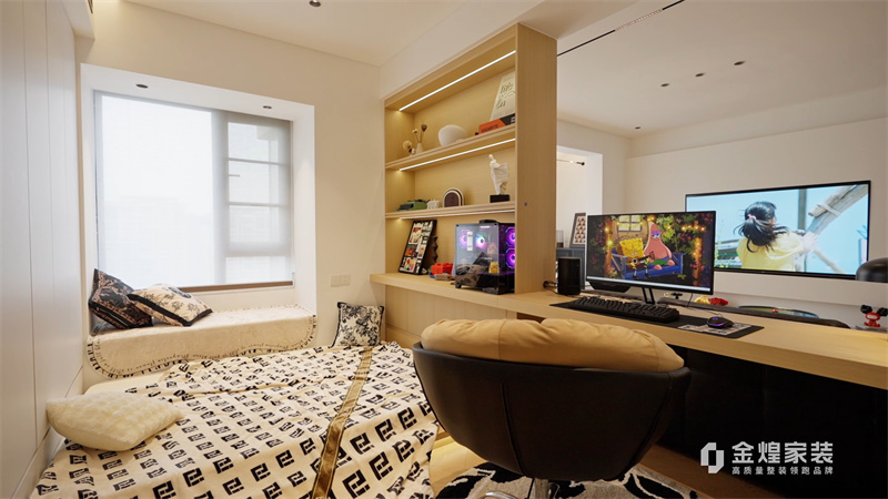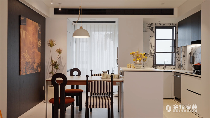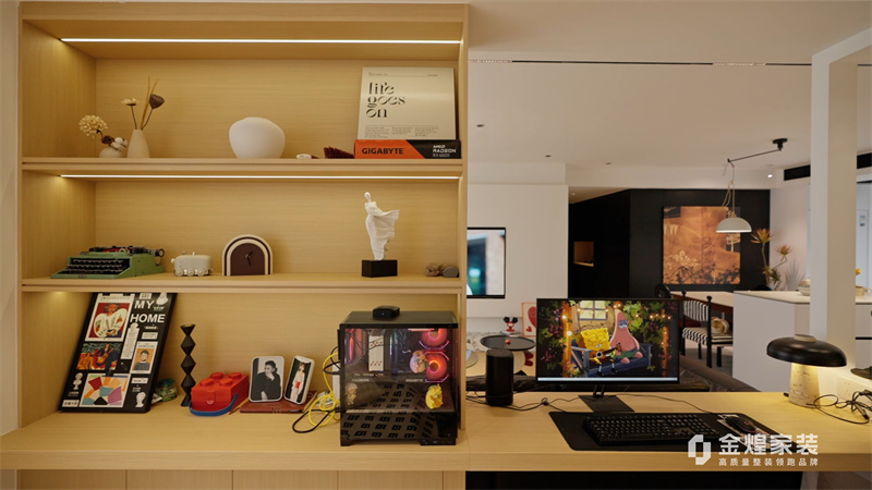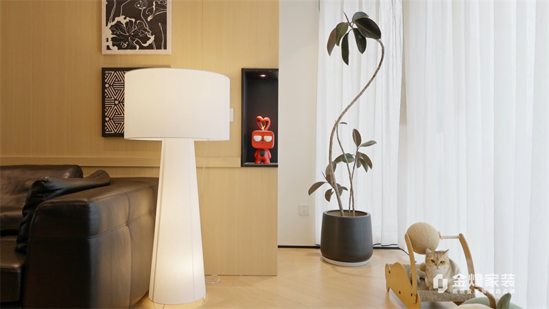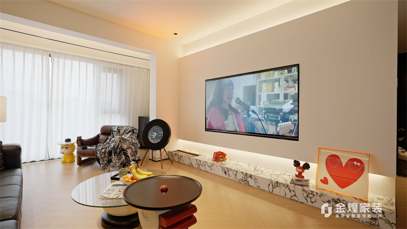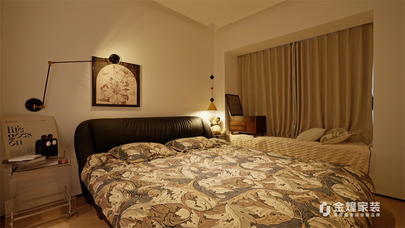 這套案例是現(xiàn)代中古混搭風(fēng)格。整體色調(diào)以淺色為主,搭配深色家具,營造出簡潔而不失溫馨的氛圍??蛷d的布局開闊,沙發(fā)、茶幾和電視的擺放合理,既美觀又實用。