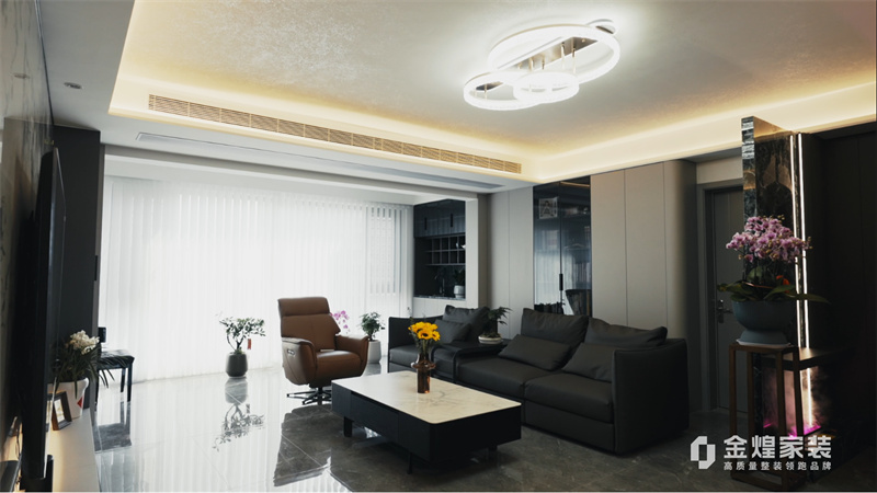 電視背景墻的大理石紋理、簡(jiǎn)潔的家具線條以及精心布置的燈光設(shè)計(jì),都體現(xiàn)了現(xiàn)代輕奢風(fēng)格的特點(diǎn)。同時(shí),通過(guò)添加一些鮮花和裝飾品,增加了空間的溫馨感和生活氣息。